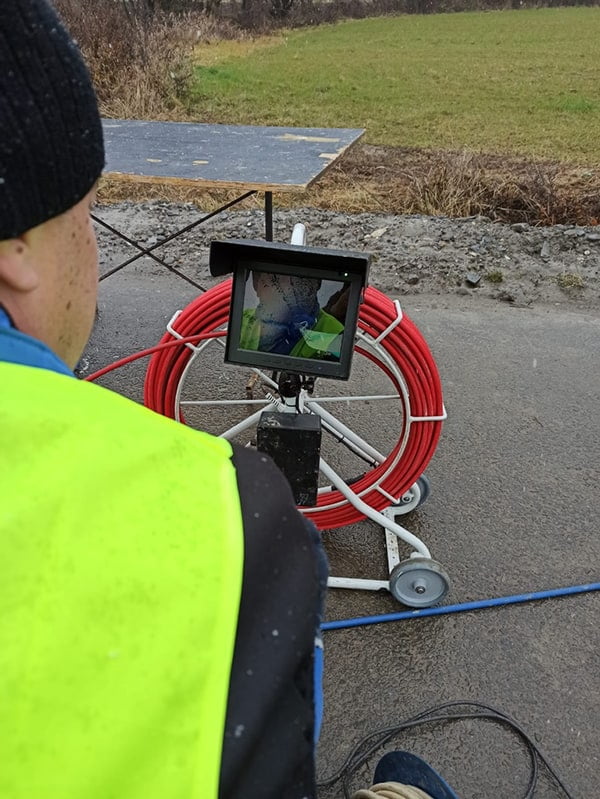 Lucrarea a inceput cu inspectia video a conductei, etapa care ne-a permis sa vedem exact starea traseului si sa localizam zonele afectate. In lucrarile de acest tip, inspectia video este esentiala, pentru ca ea arata daca discutam despre defecte locale sau despre un tronson care are nevoie de reabilitare pe o lungime mai mare. In cazul acestei lucrari, imaginile au confirmat ca conducta prezenta degradari care cereau o interventie de camasuire, astfel incat traseul sa poata fi refacut din interior si readus la o functionare corecta.